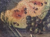 Il volume di ogni frutto, di ogni foglia, di ogni tralcio, sono messi in risalto dal taglio prospettico e da riflessi di luce magistralmente sfumati.