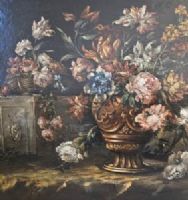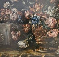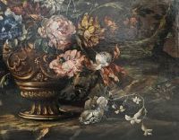 "Floral still life" Oil painting on canvas, cleaned and relined, with some non-invasive retouching, in good condition.